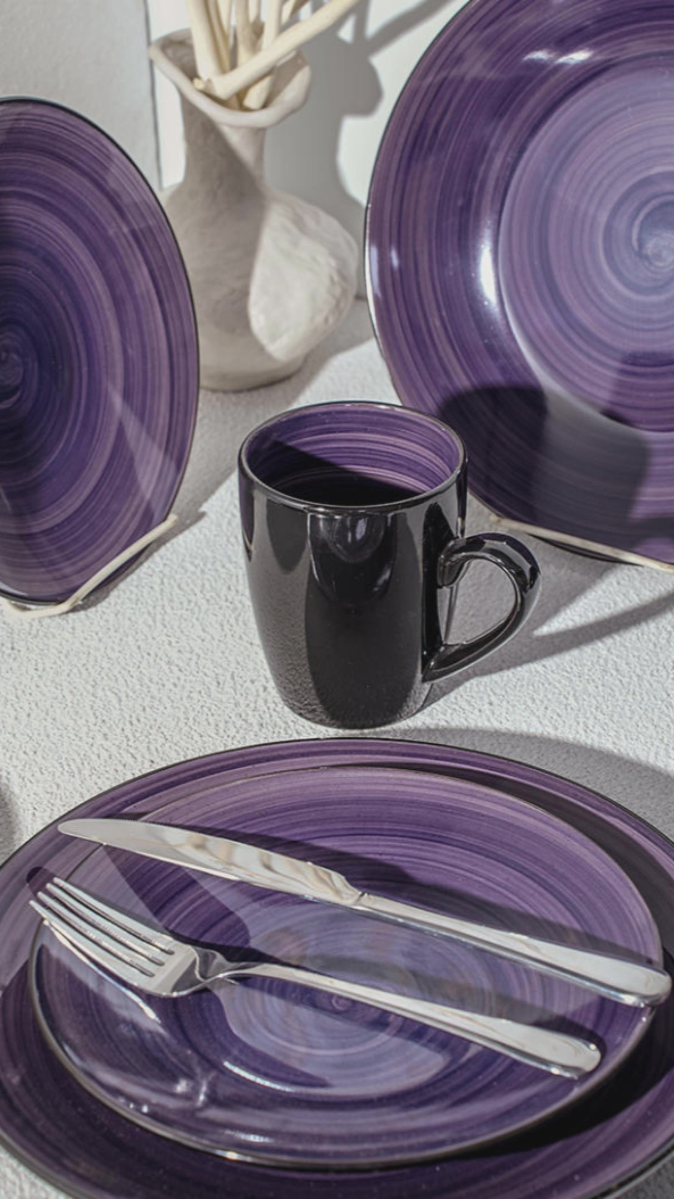 - Service for 4: 16pc Dinnerware Set including 4 of Each Dinner Plate 10.5", Salad Plate 8", Soup/Pasta Bowl 7", Mug 13oz